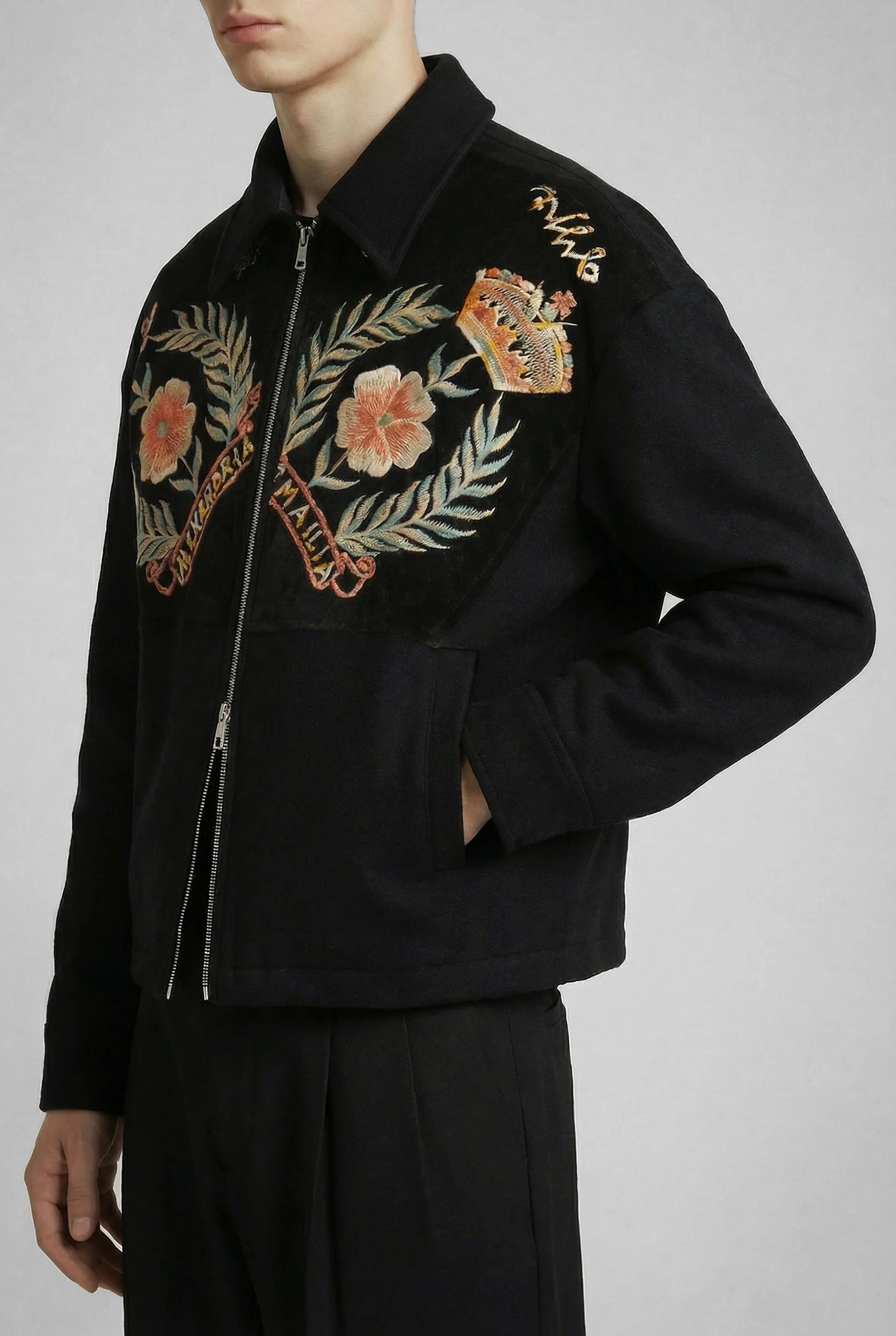 • Wool zip-up jacket with cropped, boxy fit